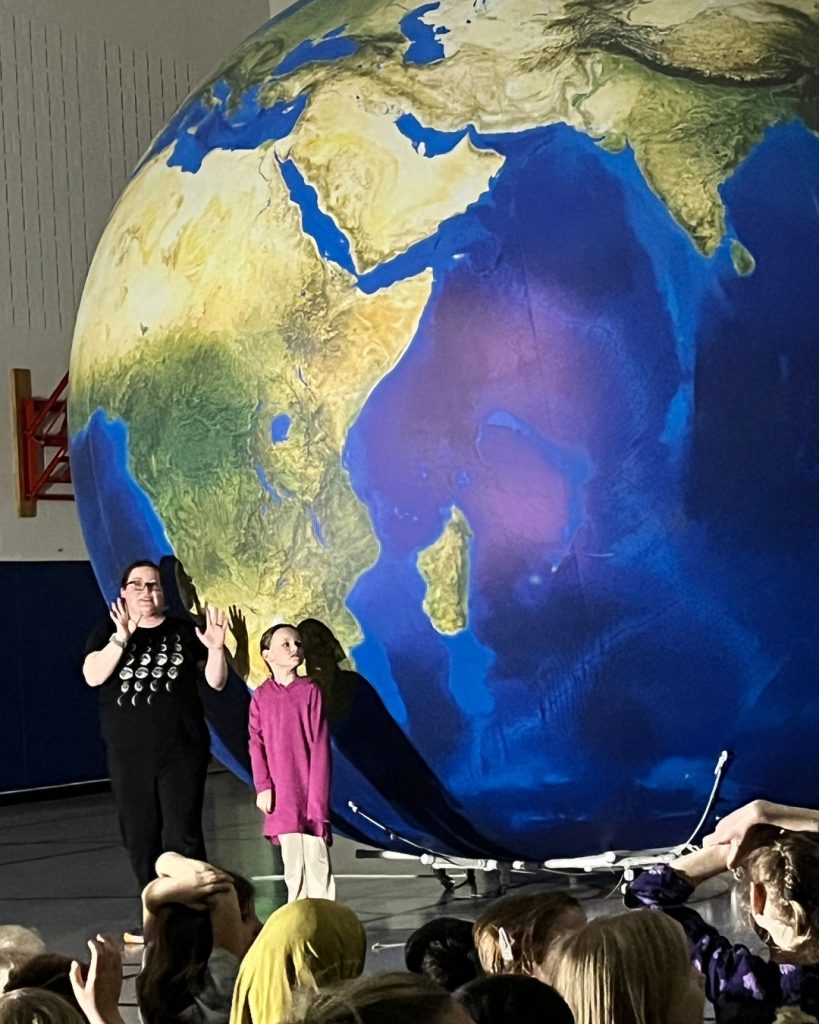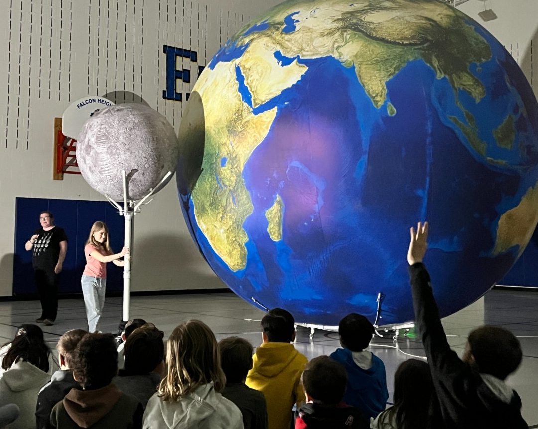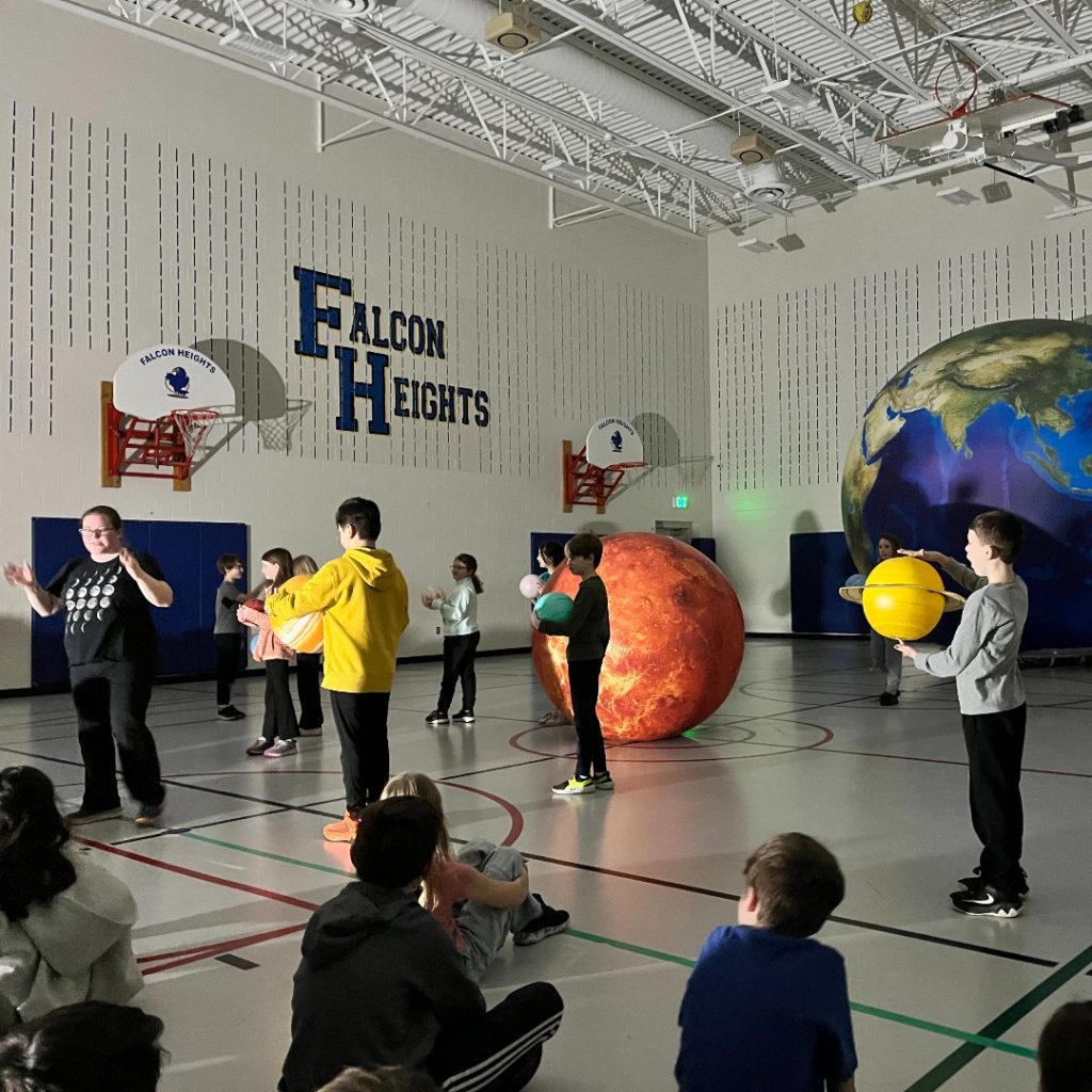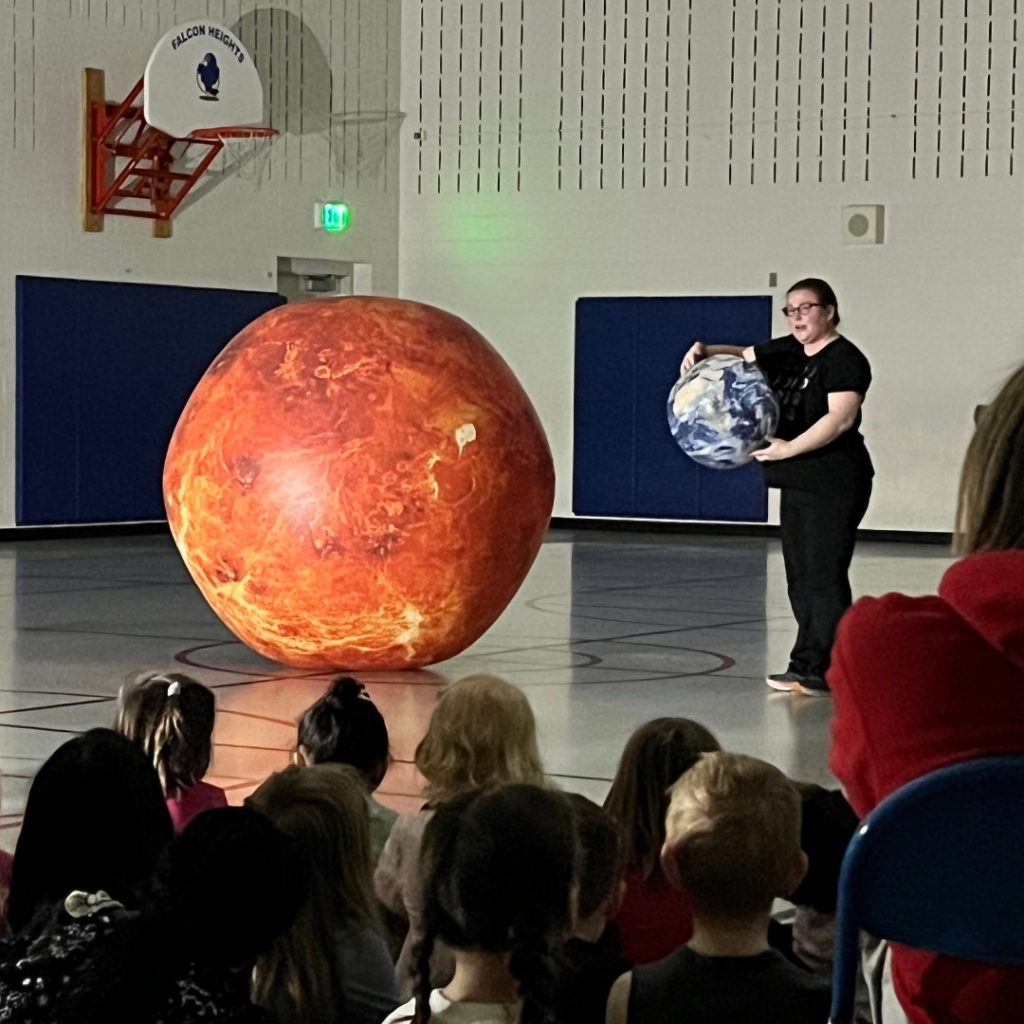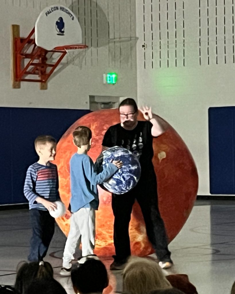 Bri and Orb had a blast visiting with the students of Falcon Heights Elementary School in Roseville Area Schools today! Students were able to connect our eclipse demonstration with the lunar eclipse that happened earlier this week, and 6th grade was excited to connect our discussion of the “goldilocks zone” to an article they read in class. All in all, a great day! #EarthScienceRocks #OrbitEarthExpo