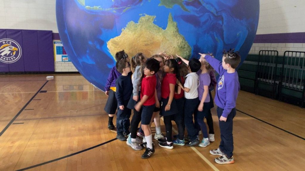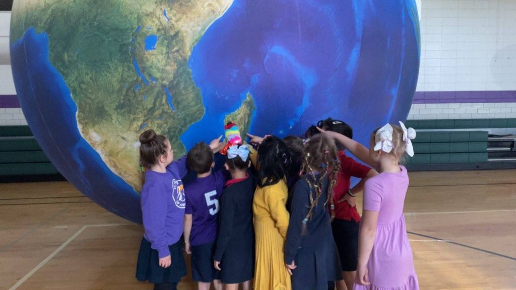 Bri & Orb had a blast visiting with the students of St. Francis of Assisi School in Rochester Catholic Schools. As part of the school’s countdown to summer vacation, it was Crazy Hair Day! Check out some of the fun hairstyles as various groups of students point out landforms on Orb! #EarthScienceRocks #OrbitEarthExpo #CatholicSchools Diocese of Winona-Rochester