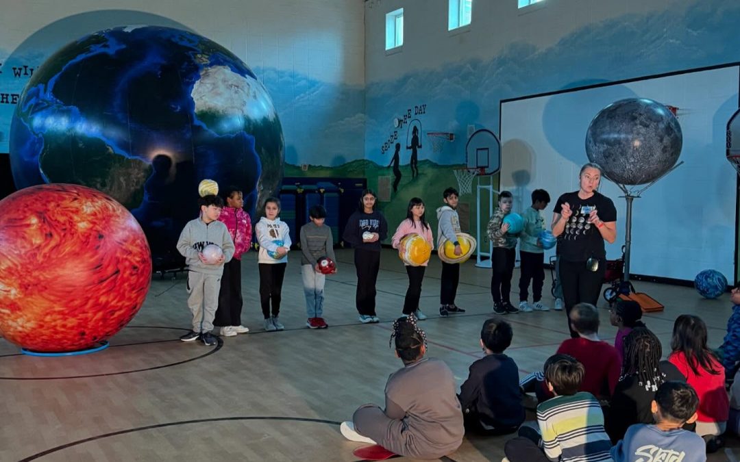 Carrie & Orb visited with the 2nd & 4th grade stud Carrie & Orb visited with the 2nd & 4th grade students of Creek View Elementary on Friday. They had a blast demonstrating moon phases, eclipses, and putting the planets in motion! Special thanks to the Creek View PTA and the School Governance Council for arranging the visit. Rocky is looking forward to his visit on April 1st! @cvescheetahs @fultoncoschools @creekviewpta #EarthScienceRocks #ThankYouPTA #CVESCheetahs